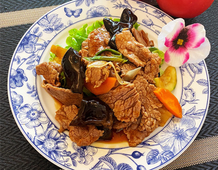 Boeuf sauté aux champignons noirs