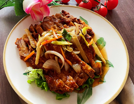 Poulet sauté à la sauce aigre douce
