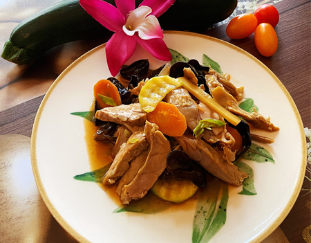 Canard sauté au champignons noirs